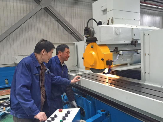操作工(gōng)和檢驗(yan)員正在(zài)驗收出(chū)口機床(chuáng)M7150*16/HZ