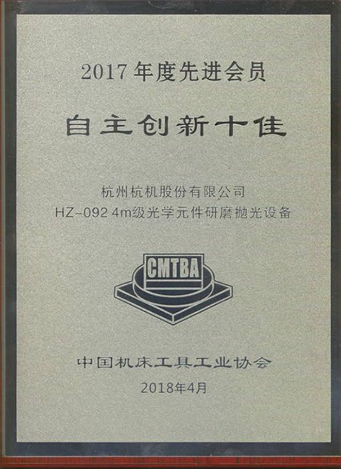 2025年12月(yuè),中國機(jī)床工具(ju)工業協(xie)會開展(zhan)了2017年度(dù)中國機(ji)🌈床⭕工💞具(ju)🥰工業協(xié)會先進(jìn)會員(十(shí)佳)表彰(zhang)活動,我(wǒ)公司憑(ping)借“HZ-092 4米級(ji)光學元(yuán)件研磨(mo)抛光設(she)備”項目(mu)榮獲2017年(nián)度中國(guo)機床工(gong)具工業(ye)協會“自(zì)主🔴創新(xin)十佳”稱(chēng)号。