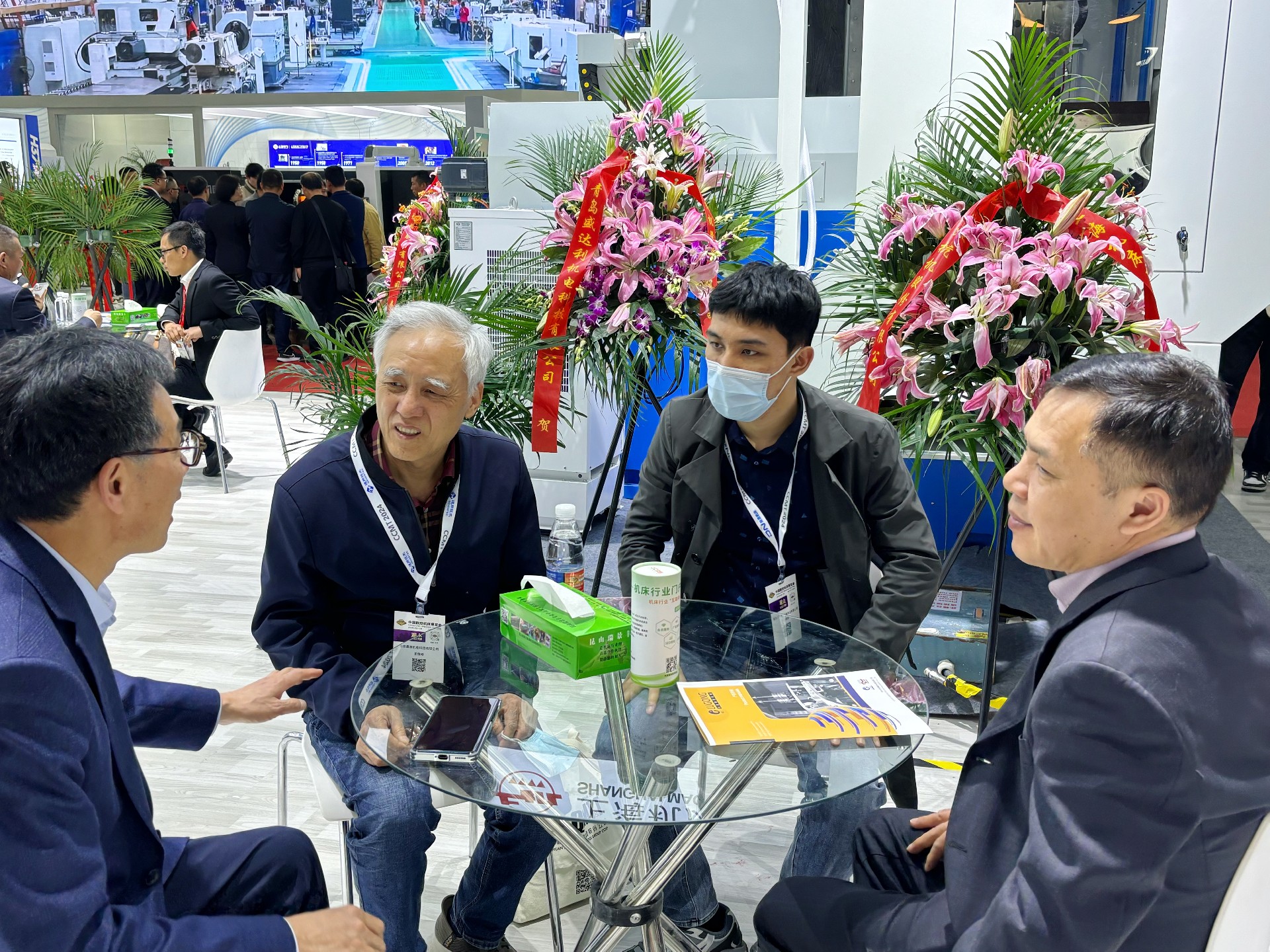 日上(shàng)午,北一(yī)大隈總(zong)經理北(bei)河勝義(yi)、北一大(da)隈副總(zǒng)經理李(lǐ)🌍金勇到(dào)訪杭機(ji)股份展(zhan)台,與杭(háng)機股份(fen)副董事(shi)長孫益(yì)民,總❌經(jīng)理金正(zhèng)鋼,常務(wù)副總經(jing)理孫冬(dōng)平交流(liu)探讨。